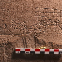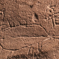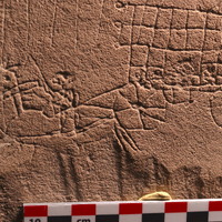 - Intérieur, pièce principale du niveau 1, sur le début du côté gauche du manteau de la cheminée, orienté à l'est, à la verticale, à 25 cm de la gauche (du bloc) et 150 cm de haut