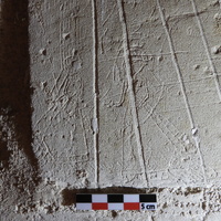 - Intérieur, niveau 1, paroi à gauche de la fenêtre nord ouest, orienté a l'est, à la verticale, à 132 cm de haut